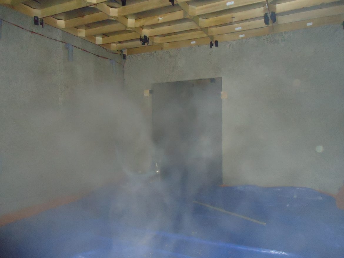 (vi) Thiết bị phun sương áp lực chỉ có 50-60% nước được đi vào không khí tạo ẩm cho nhà yến còn lại tích tụ trên sàn nhà yến. Thiết bị phun sương ly tâm( con cốc) thì có khoảng 65-75% nước ly tâm bắn ra được đi vào không khí tạo ẩm. Thiết bị phun sương siêu âm thì tốt hơn nhưng cũng chỉ có 80-85% sương nước được đi vào không khí tạo ẩm, còn lại ở nhiệt độ bình thường trong nhà yến 26-28oC sẽ ngưng tụ đọng lại thành nước, ngược lại để biến nước thành sương ( máy cần 1 số nhiệt năng và ảnh hưởng làm nâng nhiệt trong nhà yến). Tất cả nước này đọng lại trên sàn nhà yến, nếu sàn chống thấm không tốt sẽ thấm xuống trần, thấm vào ván, ván bị hồi ẩm trên 25% là bị nấm mốc xâm hại ngay. Sàn nhà yến chống thấm tốt, nước nằm đó thấm xuyên qua những khe thật nhỏ giữa cát hạt cát với cát, cement với cát… lâu ngày làm rỉ sét sắt trong bê tông, chuyện có thể xảy ra 10-15 năm sau trong cuộc đời nhà yến.